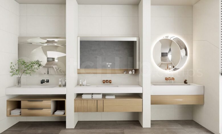 - نوعان من المرايا: مرآة مستطيلة مع تخزين ومرآة مستديرة بإضاءة LED