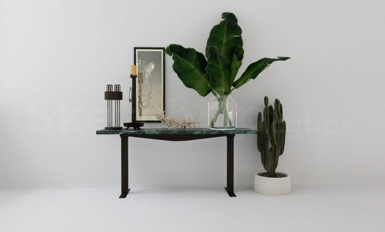 ال نموذج جدول وحدة التحكم SketchUp يجسد الأناقة الحديثة بتصميمه الأنيق وجاذبيته الوظيفية. هذا نموذج SketchUp مجاني تتميز بطاولة كونسول متطورة بخطوط نظيفة ولمسة نهائية بنية عميقة تكمل أي تصميم داخلي. يتميز تصميم الطاولة، الذي تم تصميمه مع مراعاة التفاصيل، بما يلي: