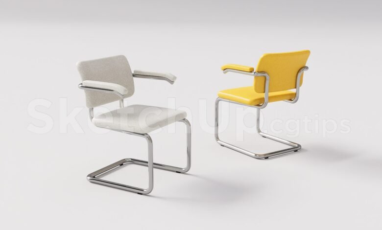 ال نموذج كرسي SketchUp تمثل هذه الصور مزيجًا مثاليًا من التصميم الحديث والوظائف. هذا تحميل نموذج SketchUp مجانا يوفر تصميمًا معقدًا مع إطار كروم أنيق ومساند أذرع سوداء أنيقة، مما يعزز أي مساحة داخلية. مقعد الكرسي ومسند الظهر مصنوعان من مادة منسوجة خفيفة توفر الراحة والمظهر الجمالي. تشمل الميزات الرئيسية ما يلي: