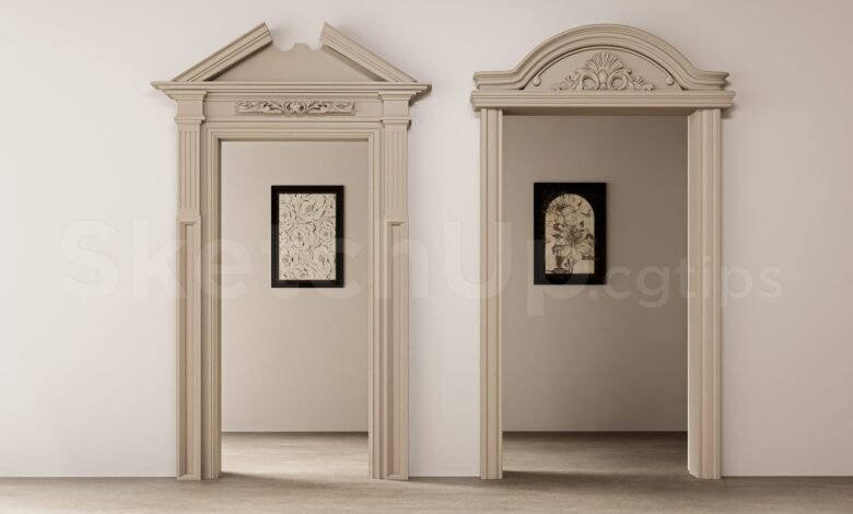 18684. نموذج SketchUp مجاني لمدخل خشبي كلاسيكي مقوس