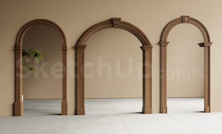 ال نموذج سكيتش اب من أ مدخل خشبي كلاسيكي مقوس يقدم عنصرًا معماريًا أنيقًا مثاليًا للتصميمات الداخلية السكنية والتجارية. هؤلاء نماذج SketchUp مجانية للتحميل يعرض براعة مذهلة مع أنسجة حبيبات خشبية مفصلة بدقة ولمسة نهائية غنية ترابية تنضح بالرقي الخالد.